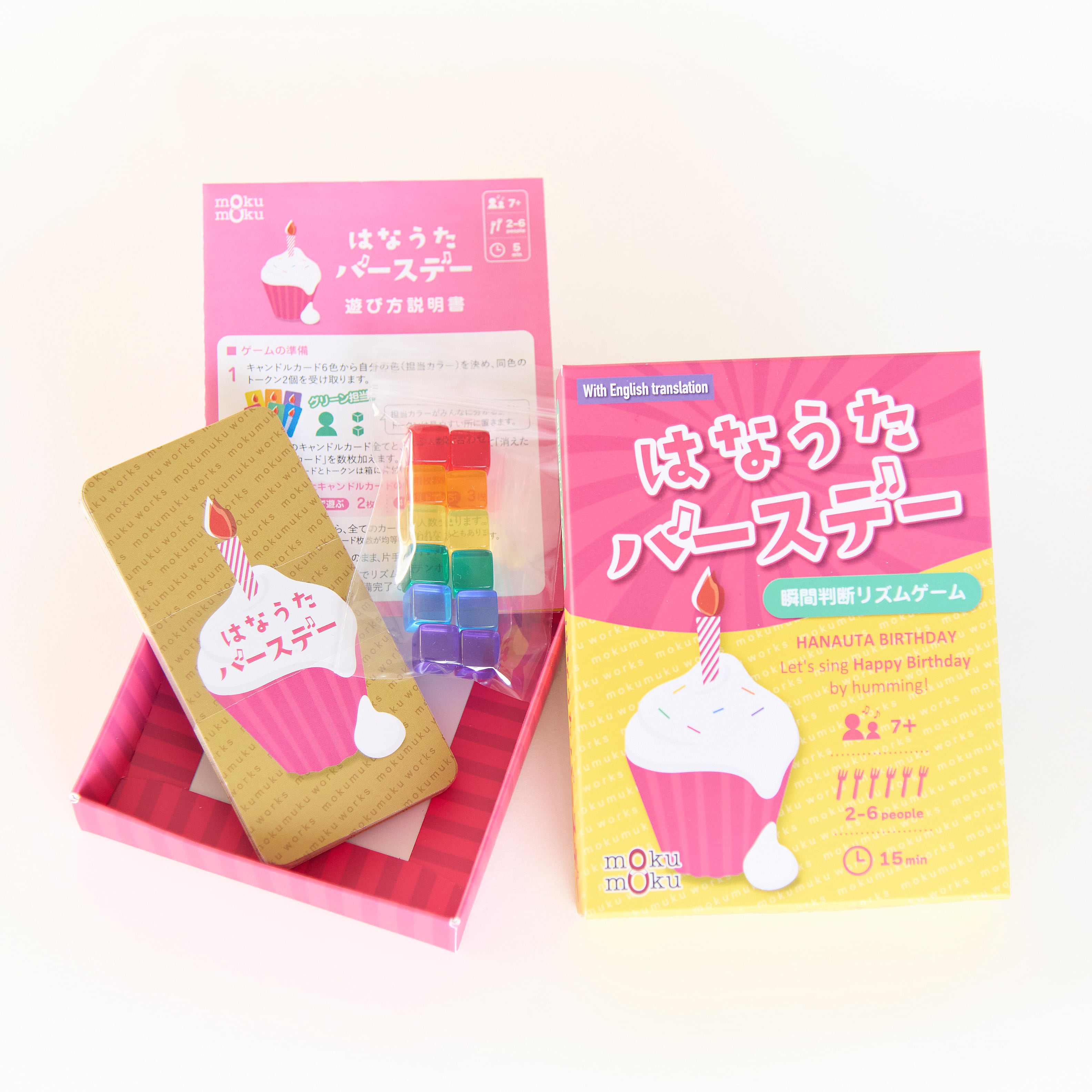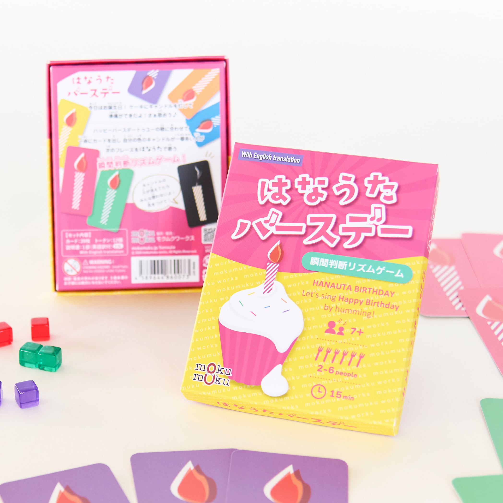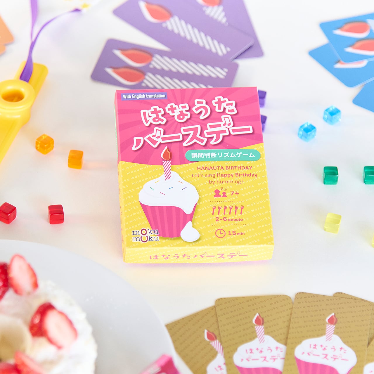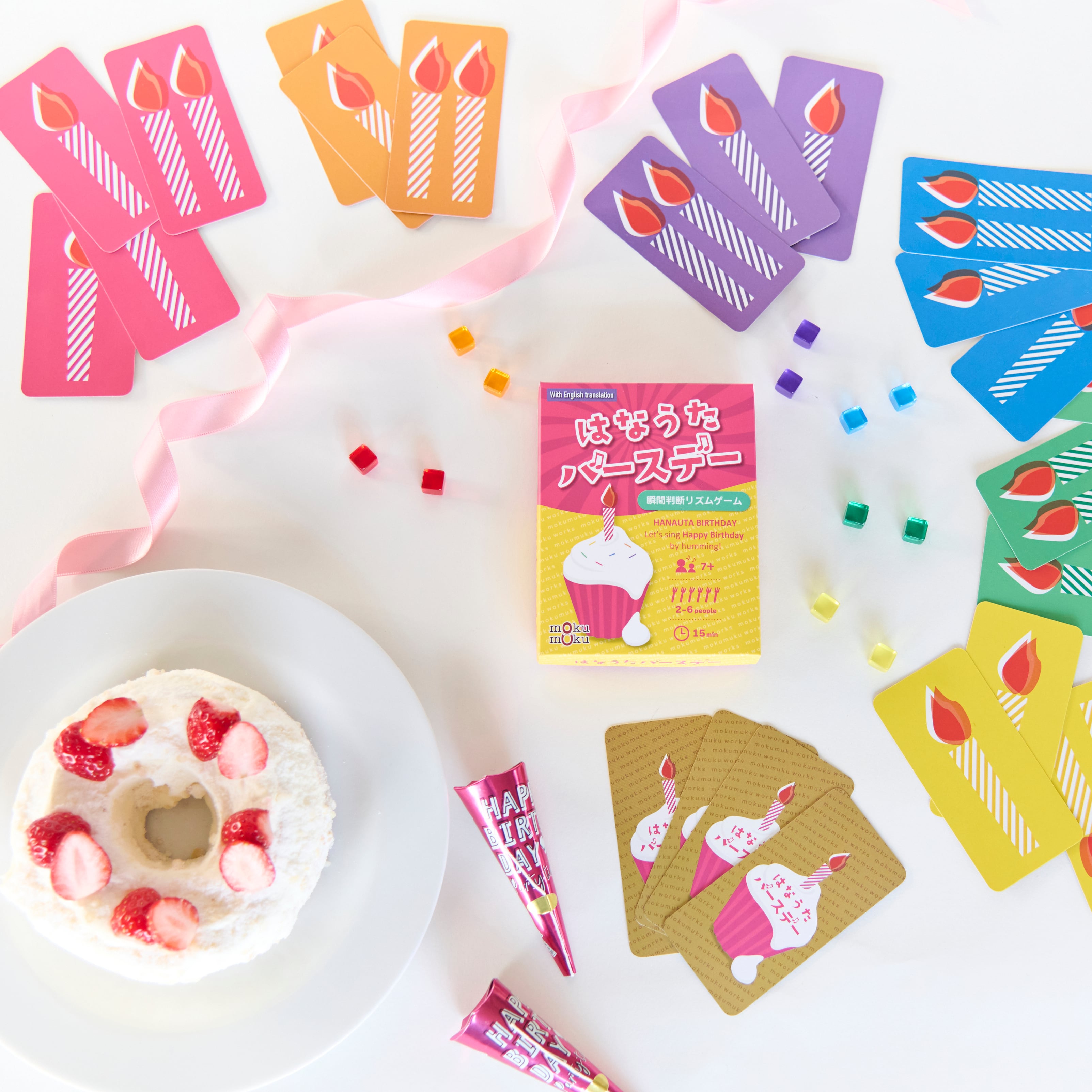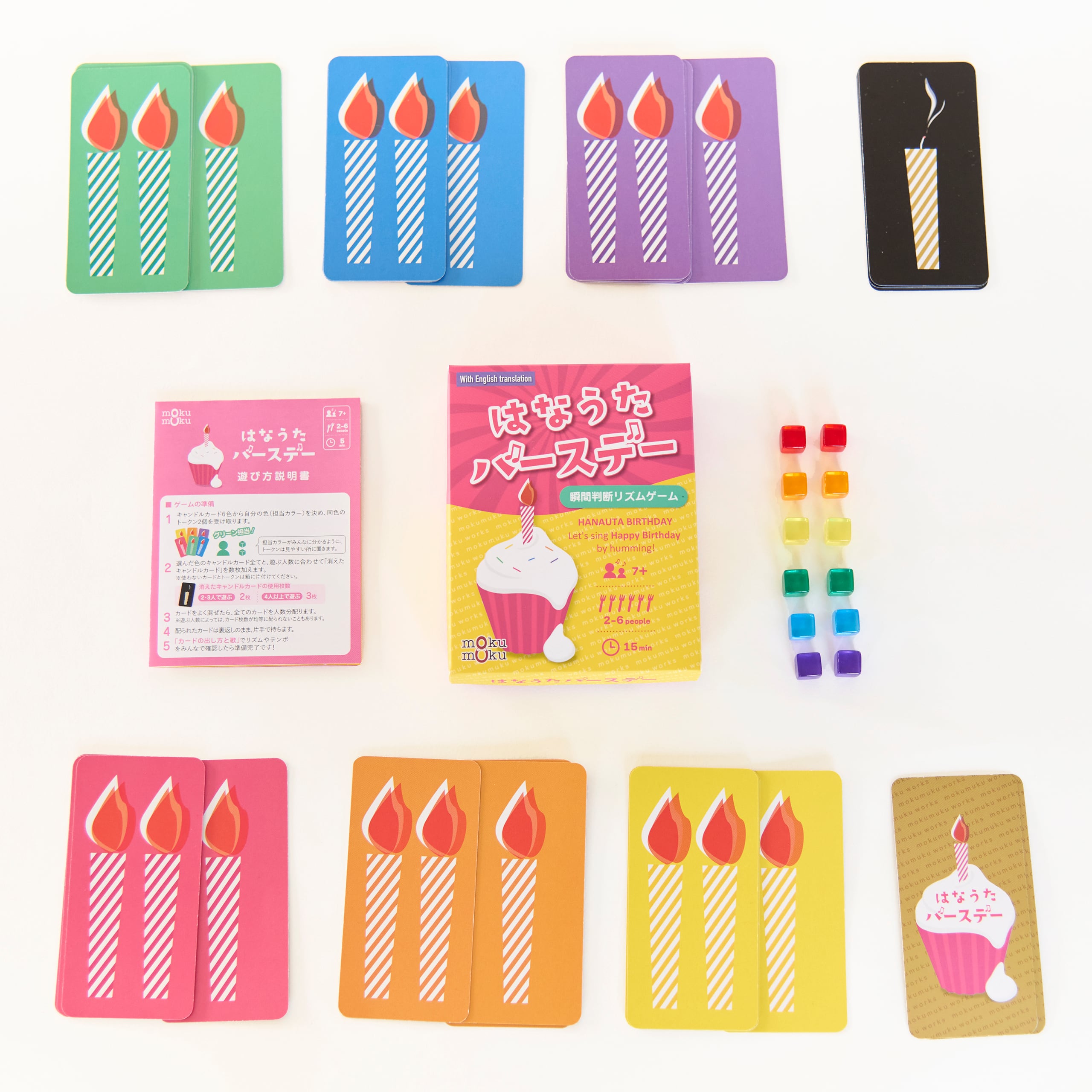ハッピーバースデーの歌に合わせて一斉にカードを出します。自分の色のキャンドルが一番多い人が次のフレーズをはなうたで歌う、瞬間判断リズムゲーム。